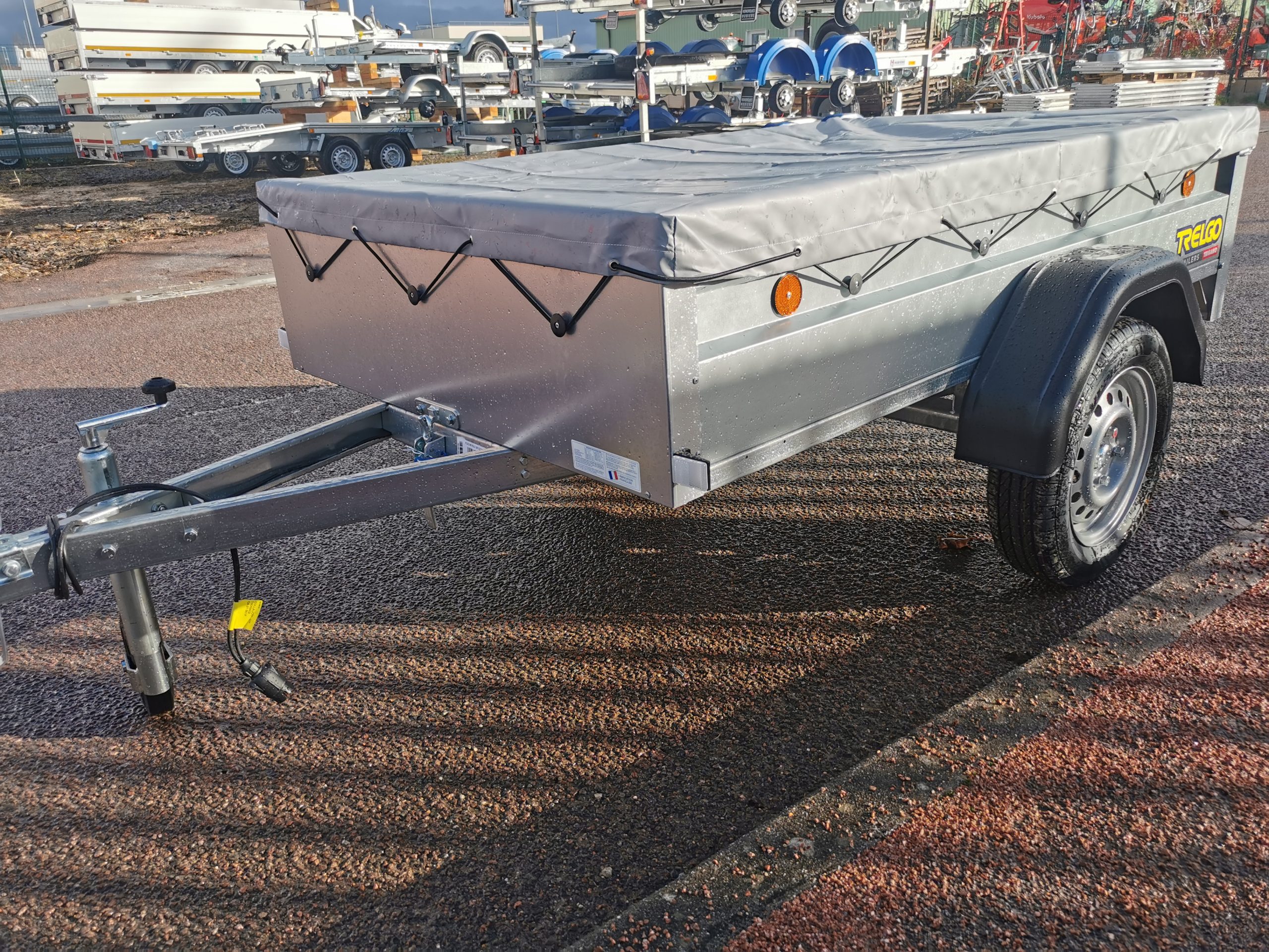 La remolque TRIGANO está equipada con un eje de resistencia de 750 kg, un timón de maniobra y una lona plana. Puede ser conducida sin necesidad de permiso E. Sus dimensiones útiles son de 1,95 metros de largo, 1,15 metros de ancho y 0,30 metros de altura. El Peso Total Autorizado en Carga (PTAC) es de 500 kg, proporcionando una carga útil de 335 kg.